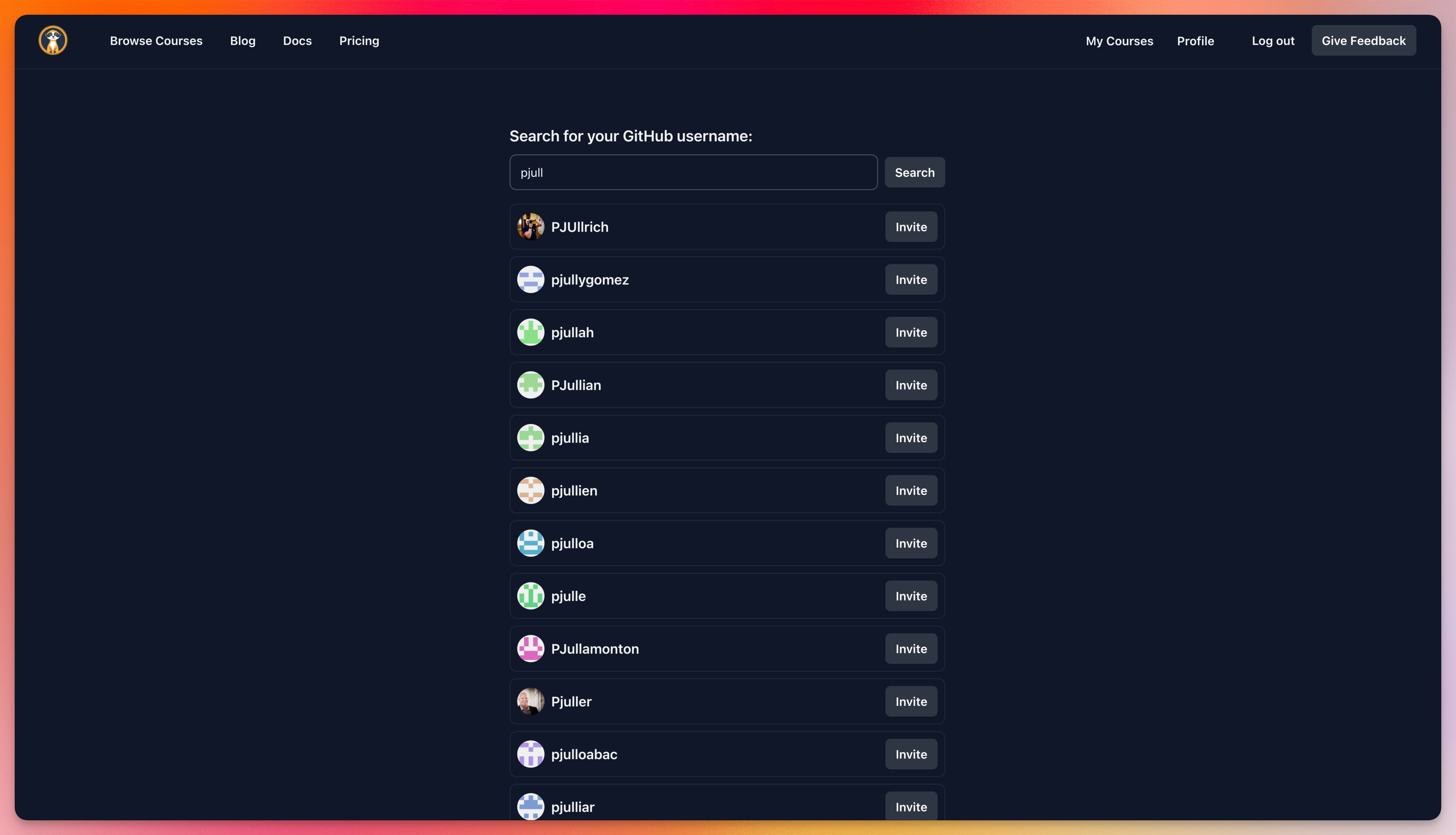 If they click the button, they can search for their GitHub username and invite themselves to your course repo. This will add them as Collaborator to your GitHub repo, which gives them access to your codebase. And that’s it!